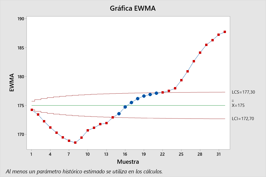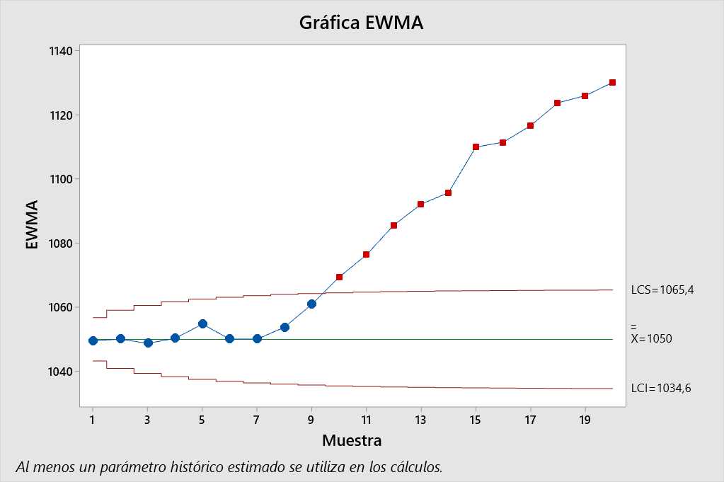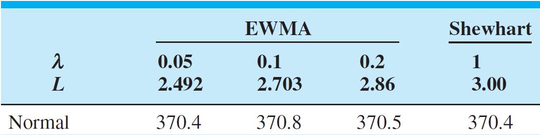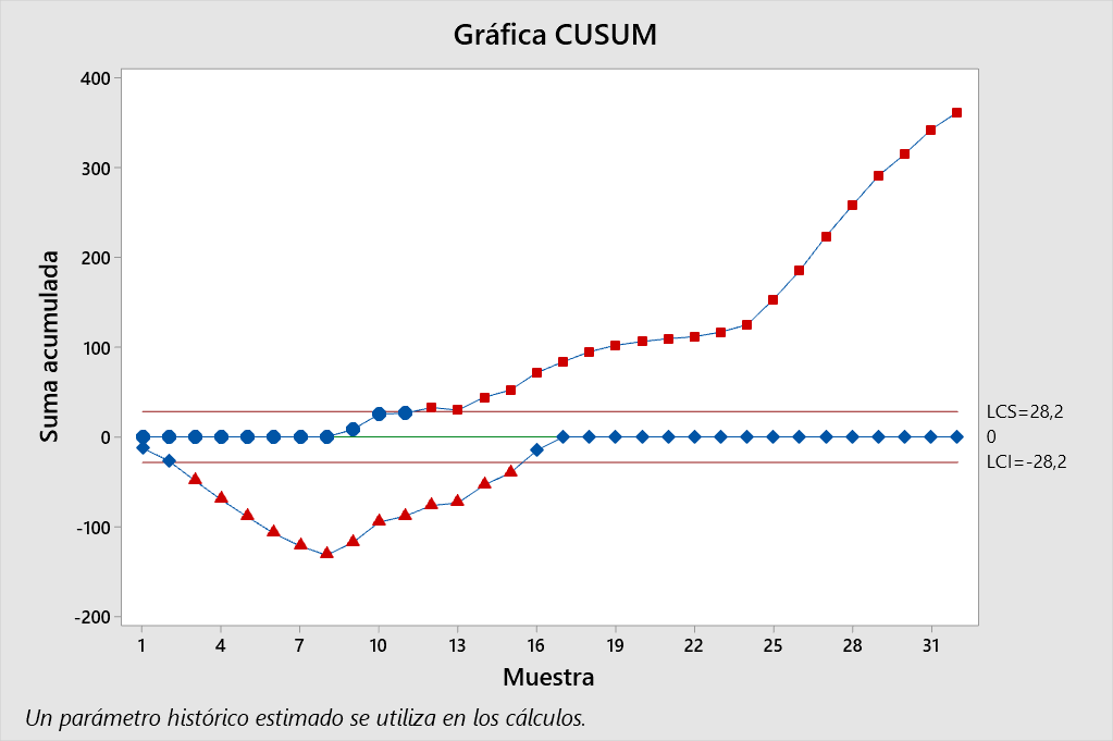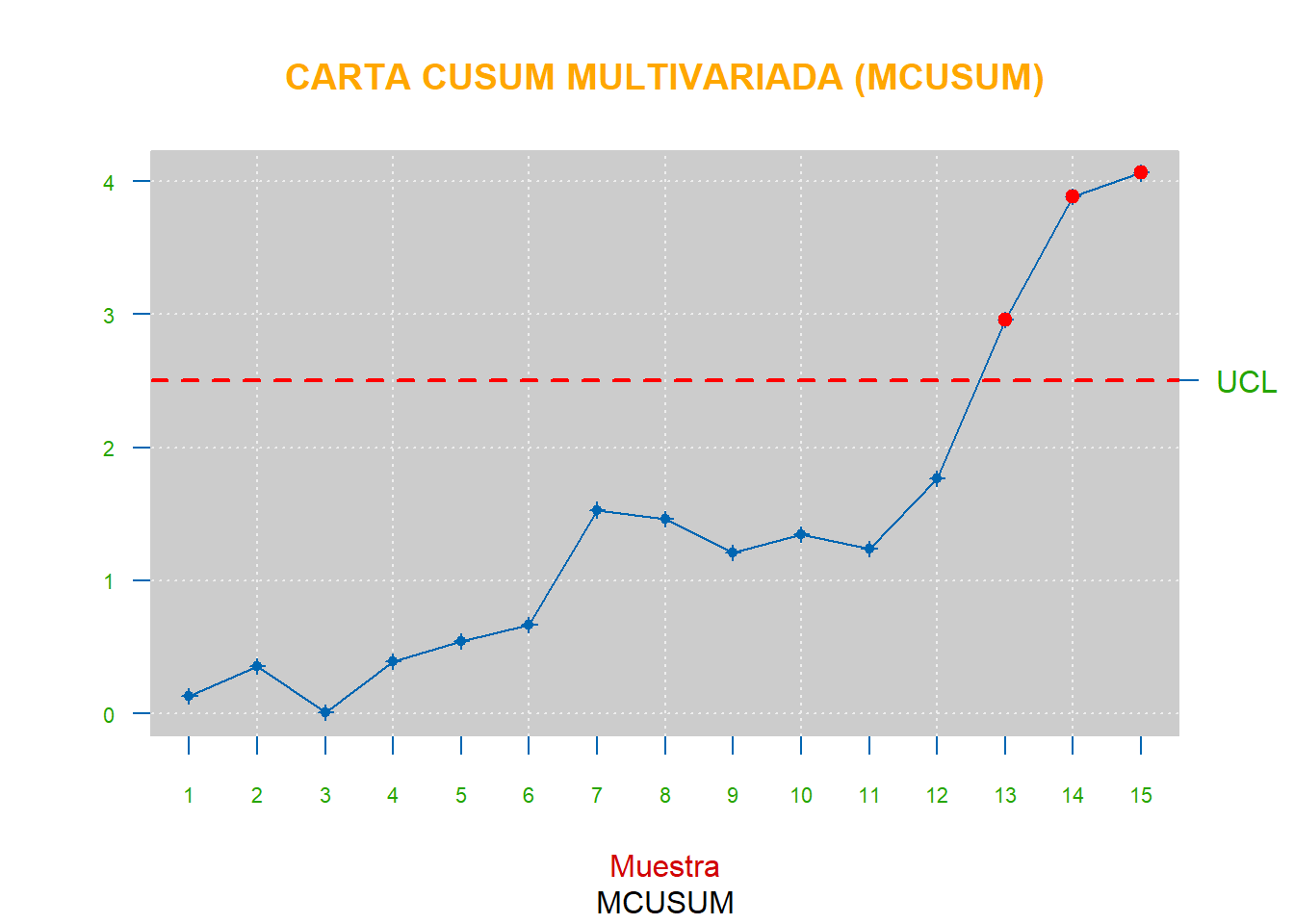 Los gráficos MCUSUM y MEWMA son alternativas a la carta \(T^2\) de Hotelling en situaciones en las que es importante detectar pequeños cambios en los parámetros de un proceso. En tales situaciones, estos gráficos tienen un mejor rendimiento en términos de ARL y, por lo tanto, son más sensibles que la carta \(T^2\) de Hotelling para detectar un pequeño cambio en el vector de medias del proceso que permite una acción más rápida.
