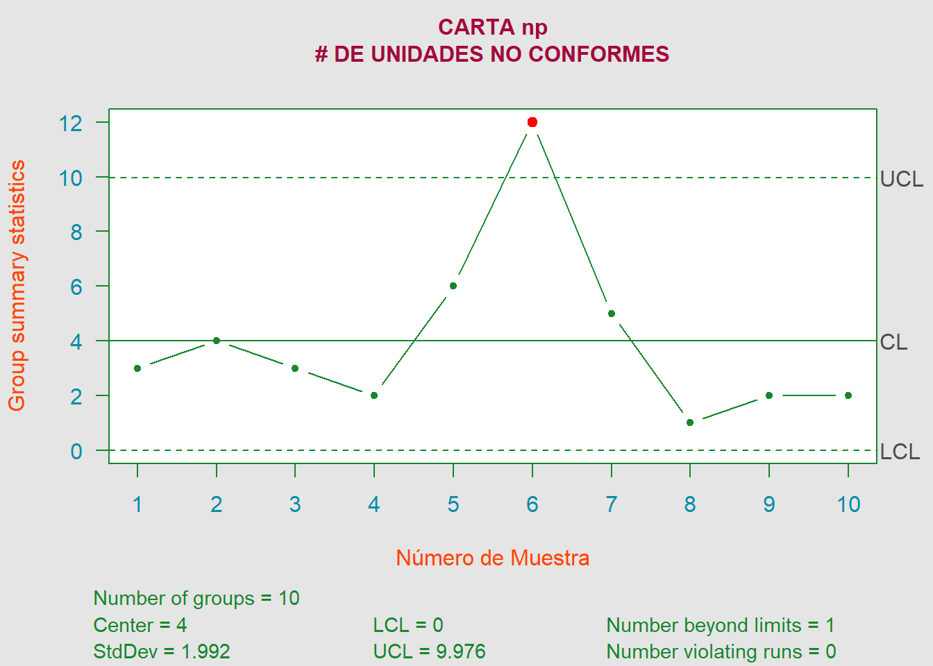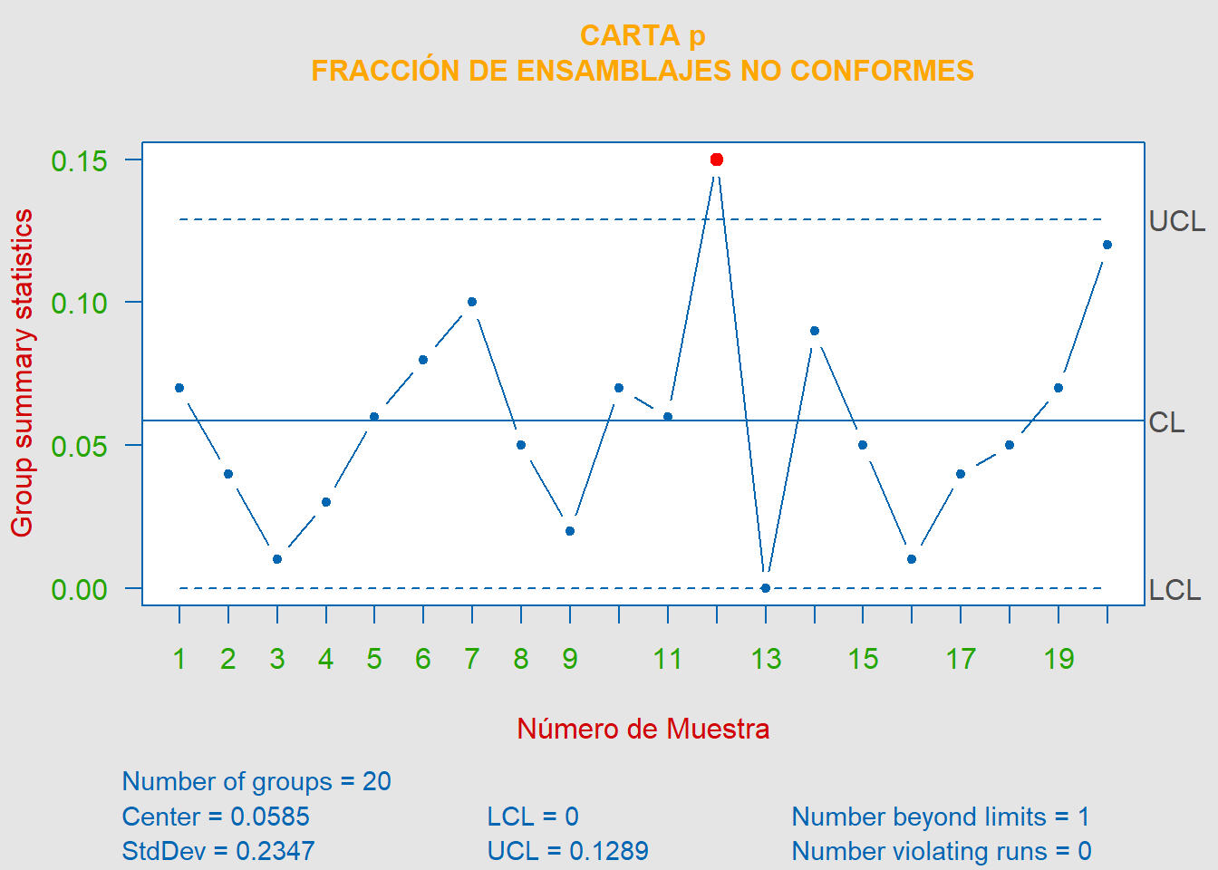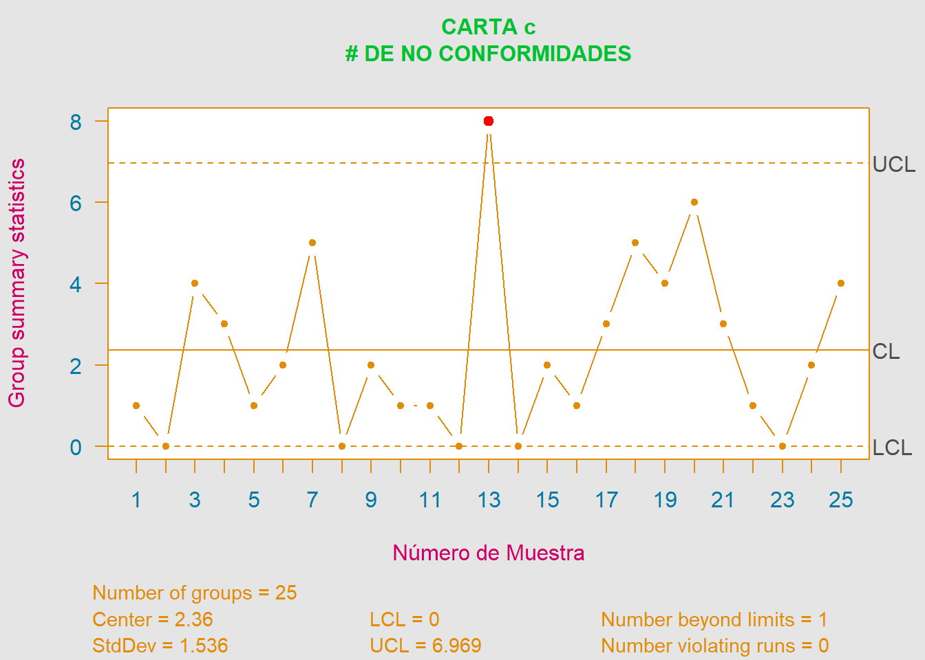 De acuerdo con lo anterior, el proceso se encuentra fuera de control, debido a la muestra \(\#13\).